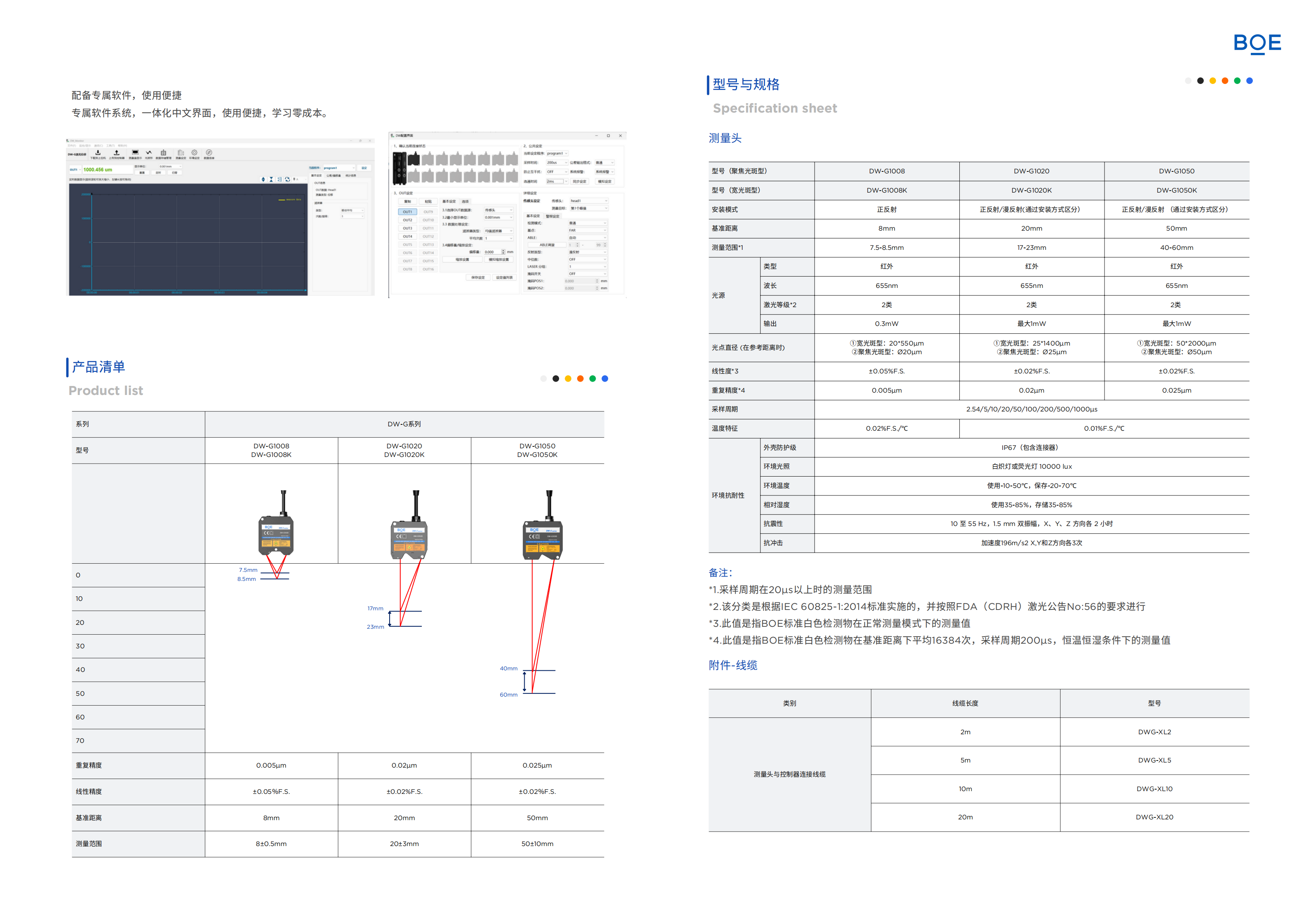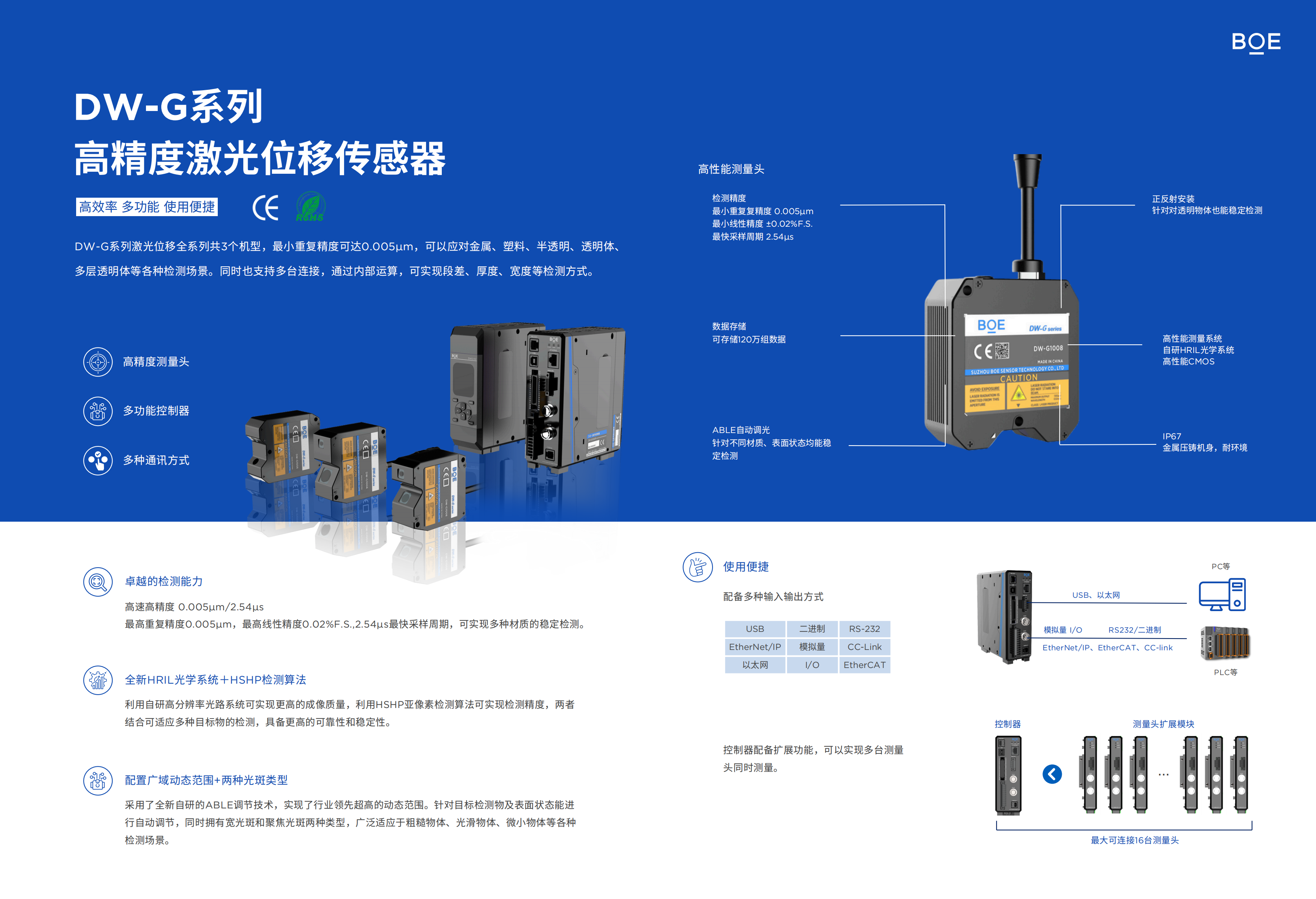 最高重复精度0.005μm,最高线性精度0.02%F.S.,2.54μs最快采样周期,可实现多种材质的稳定检测